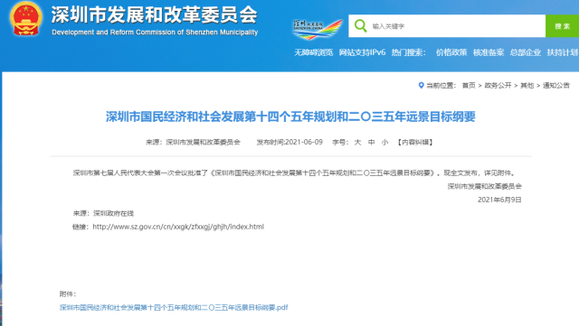 6月9日,深圳發改委發布《深圳市國民經濟和社會發展第十四個五年規劃和二〇三五年遠景目標綱要》,提出要推...