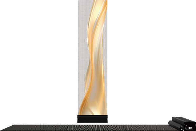 屏體厚度低于2MM,無縫曲面貼裝,貼裝在透明玻璃上渾然一體。