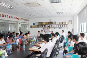 在互動交流會上,李漫鐵董事長對桂林一期班老師及學員們的到來表示了熱烈的歡迎。李漫鐵董事長表示LED 行業是正處于高速發展階段的朝陽行業,并勉勵桂林一期班的學員們努力學習封裝相關知識,積極投身于LED光電產業。隨后由市場部經理李彬賓向桂林一期班老師及學員們詳細而全面的介紹了公司概況、產品類型、發展歷程及對未來的戰略規劃。在最后的交流互動環節,學員就其關注的問題與公司相關負責人進行了積極熱烈的溝通。
