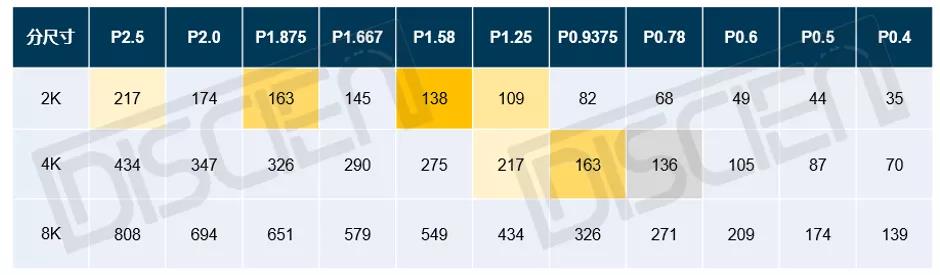 LED一體機主要目前應用面積在3-13㎡;在超大會議室仍將以LED顯示屏模組拼接的形式;而100寸之下市場LED小間距相較于液晶不具成本及價格優勢,優勢應用尺寸將在100-200寸之間,因為超過200寸的屏體寬度過寬,對室內凈高要求較高;據DISCIEN數據統計,目前市場超過50%的銷售均為138寸;而在4K趨勢下,目前P0.9產品各廠商均可實現量產,可以預見163寸的0.9產品將率先成為4K市場的主流,而從8K應用看,200寸以下的應用之路較遠;
