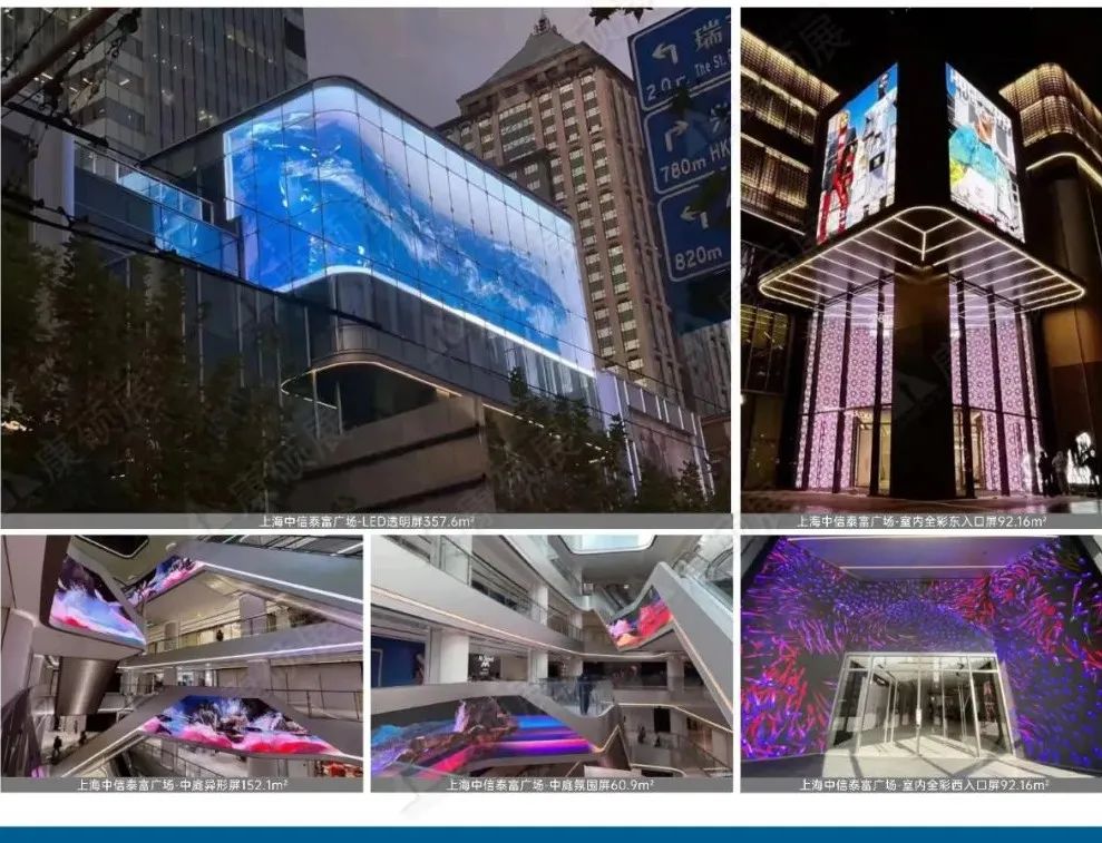 上海中信泰富商業廣場外觀建造上采用形制各異的玻璃幕墻和新型復合材料,在項目東、西、中打造了通透的玻璃空間,結合錯落有致的商鋪陽臺與下沉庭院,應用雷曼康碩展的LED系統解決方案,將原本龐大而單一的體量打散,消解成一個個不同的“像素盒子”,重構出一幅通透、多元、互動的城市圖景,搭建出美輪美奐的空間形象。